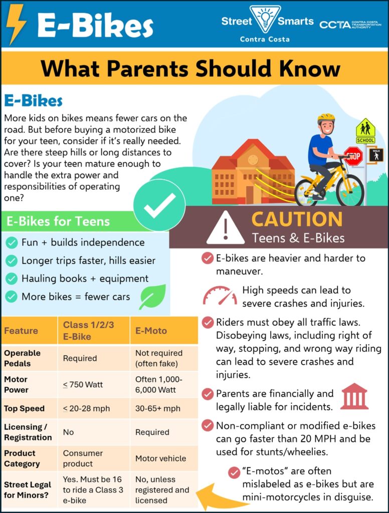 If you plan to get your child an e-bike or e-scooter, a parent (or experienced adult cyclist) is advised to ride with them to teach and demonstrate the rules of the road and safe riding techniques. If your young rider cannot maintain control, rides unpredictably, or has trouble handling their new wheels in various types of conditions, it may be too soon for them to graduate from their traditional, non-motorized bike or scooter.