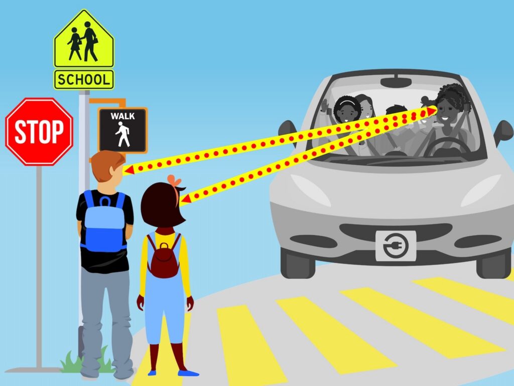 ☑ Eye contact, avoiding distractions, parking lot awareness